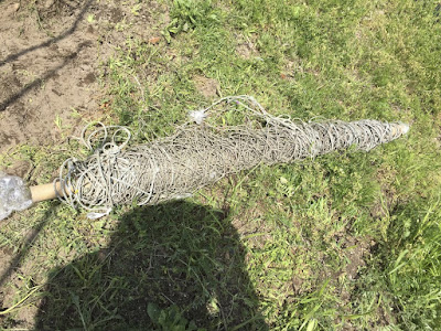 | 折りたたんで保管しておくと、次に使うときにちょっともつれやすい。 ビニールマルチに巻きつけるというやり方はばっちりだった。 |