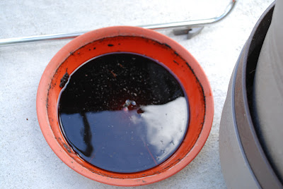 受け皿を見てみると。そこにはそれなりの液肥が溜まっていた。元気なみみず君が3〜4匹紛れ込んでいた。