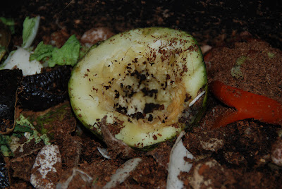 一方、こちらは昨日みみず君に嫌われてしまった冬瓜。ミミズ小屋の中でひっそりたたずんでいる(表面が少し乾いた感じになった以外変化なし)。