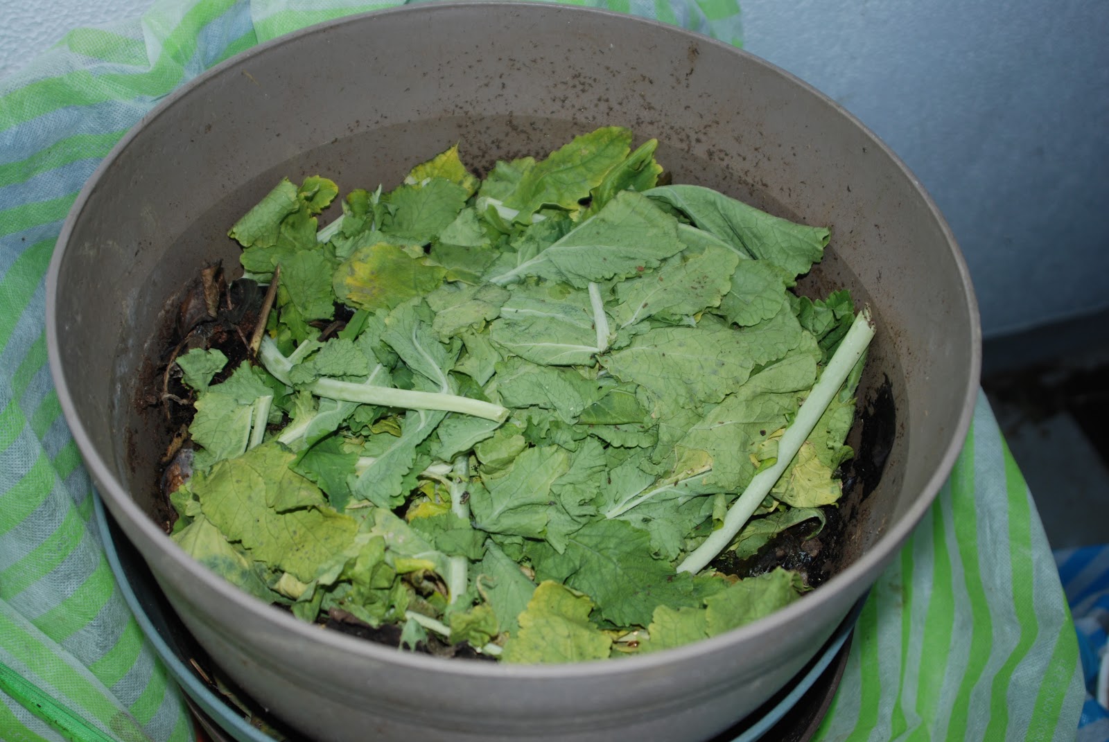 上段は、上に載っている大根の葉を外して見てみたが、この段にはミミズ君はそんなに多くない。上の段への移動は今ひとつなのか?