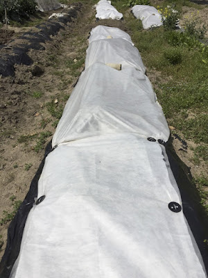 こちらは2月初めに種芋を植え、不織布をかけていた畝。