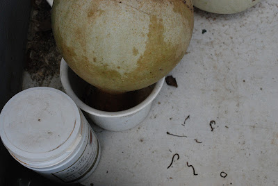 今後、逆さにしたときに液成分と一緒に死んだみみずが出てきたらこのひょうたんは以前の種取り法、すなわちひょうたんの中に水を入れては振って出す、原始的な方法をとることにする(これは思い切りクサイ)。