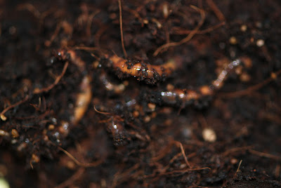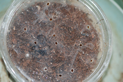 そういえば、先日ブドウを餌にした実験が発酵してしてみみず君が全滅した。あの小屋の中にもショウジョウバエが多数出現していた。ん〜ハエが居るのは悪いサインか?ちょっと心配になってきた。