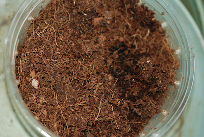 まずふたを開けてみた。あっという間に小バエはどこかに飛んでいき姿を消した。表面はココ繊維のまま少し乾いている。