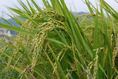 今日見てみると稲の穂は僅かの時間でしっかり垂れて、少し色も変わってきた。
