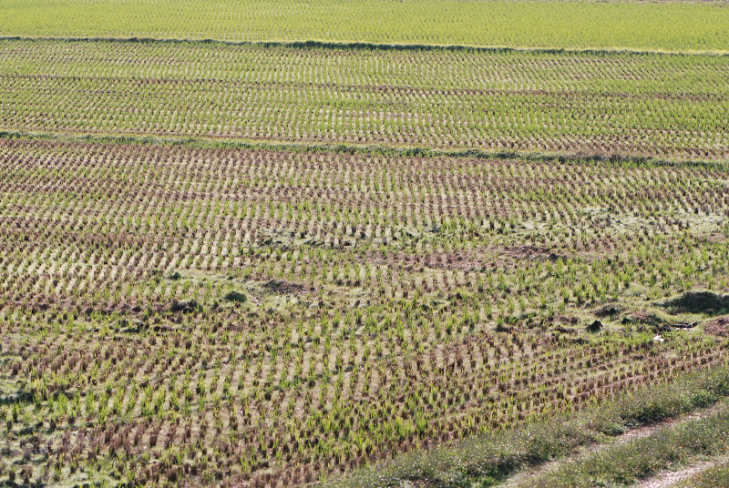 ところで、畑の前の水田は、収穫が終わりちょっと寂しい感じになってたが、稲刈り後20日程で早くも茶色一色だったところに青々とした雑草が生えてきている。少し寂しい感じになってきた私の頭もこの雑草くらい元気のあるのが生えてくるとうれしいのだが。トウガラシで刺激でもしてみる?