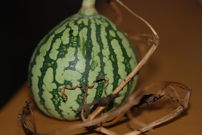 これは我が家の屋上菜園で出来たミニチュアスイカなのだ。