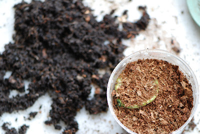 昨日の桃を入れていた観察小屋からみみず君を救い出し、ややドライ気味のココナッツ繊維と共に観察小屋に入れた。救い出したミミズの数は30匹のつもりが40匹ほどいた。桃を食べるのが予想より早かったのもうなずける。