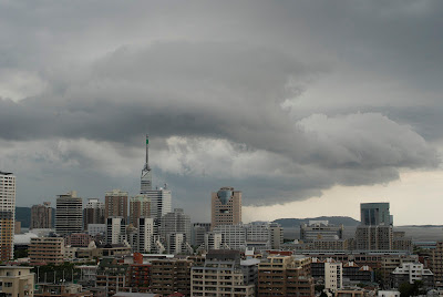 雨雲がそこまで来ている。夕方6時に部屋の中は33℃もある。