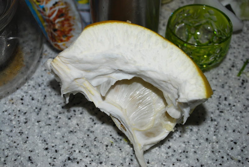 これだけの皮の厚さがあれば実は小さくなるのは当然だ。皮の部分でも、黄色い表皮以外の白っぽいところがザボン漬けになるところだ。ここは良い匂いがしてみみず君もすぐ食べてしまうような気がするのだが。