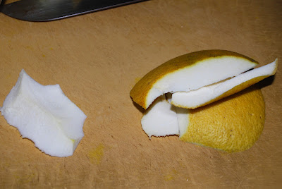 今回の実験の主役は右の黄色い表皮を含んだ皮。ただし、左の白っぽいところもサブ実験しておこう。