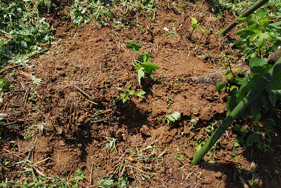 | 木から結構離れたところにも新芽が出ている。カミキリムシには苦しめられているが、何とか生き延びようと頑張っているのだ。 |