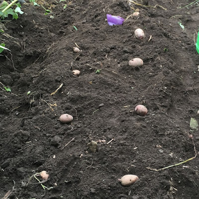 | この暑い時期に腐れずに残っていた芋たちには感激だ。 どの芋にも、もう小さな芽が出ていた。 彼らなら、そのまま植えておいても腐ることはなさそうだ。 |