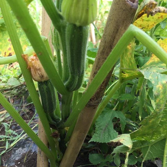 奥の方には、まだ花ズッキーニのひと苗が実を付けていたのだ。