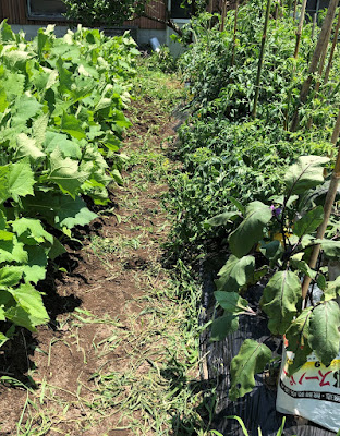 しかし残った芋の苗が元気な雑草にいじめられているのがかわいそうになった。