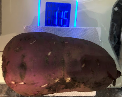 土嚢袋に入っていた『紅はるか』の重さを測ってみると、今年最重量(1.15kg)の芋が入っていた。