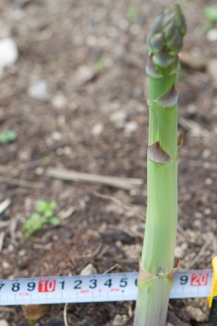 こちらが、10日程前に収穫した一番型がよかったアスパラ。