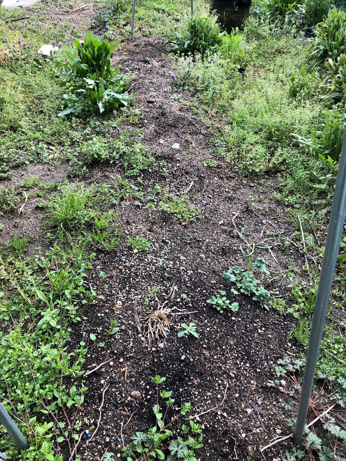 | ここが以前活躍していたアスパラのメインの畝。 雑草をある程度抜いて、アスパラの出てくるのを待ったのだが。。 |