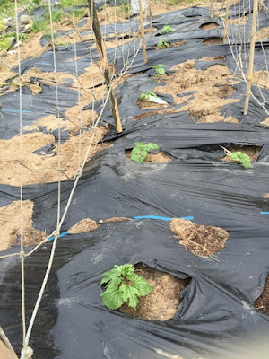 エンドウ豆の収穫後の跡地には、ゴーヤの苗を植えた。