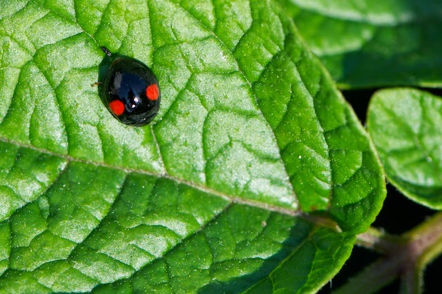 | こちらは野菜の葉を食べるニジュウヤホシテントウ、害虫だ。 |