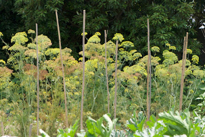 | 手前のアーティチョークは雑草予防シート、奥のトウモロコシはマルチを張っている。 このアスパラの畝も、雑草予防法を考えなくてはならない。 ただ、苗を植えた後、しかもアスパラネットを張っているので厄介なのだ。 |