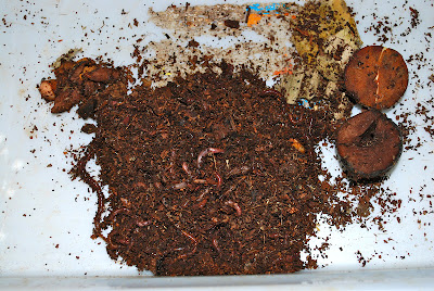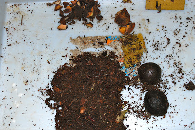 ミミズ小屋では、アボガドの種は2ヶ月間は全く食べられる様子がない。