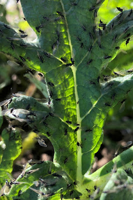 我が家のアーティチョークでは寒くなったというのに、まだアブラムシが元気。