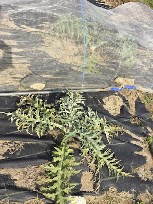 アーティチョークは思うように育てられなかったので、まずまずの苗がまばらに育っている。