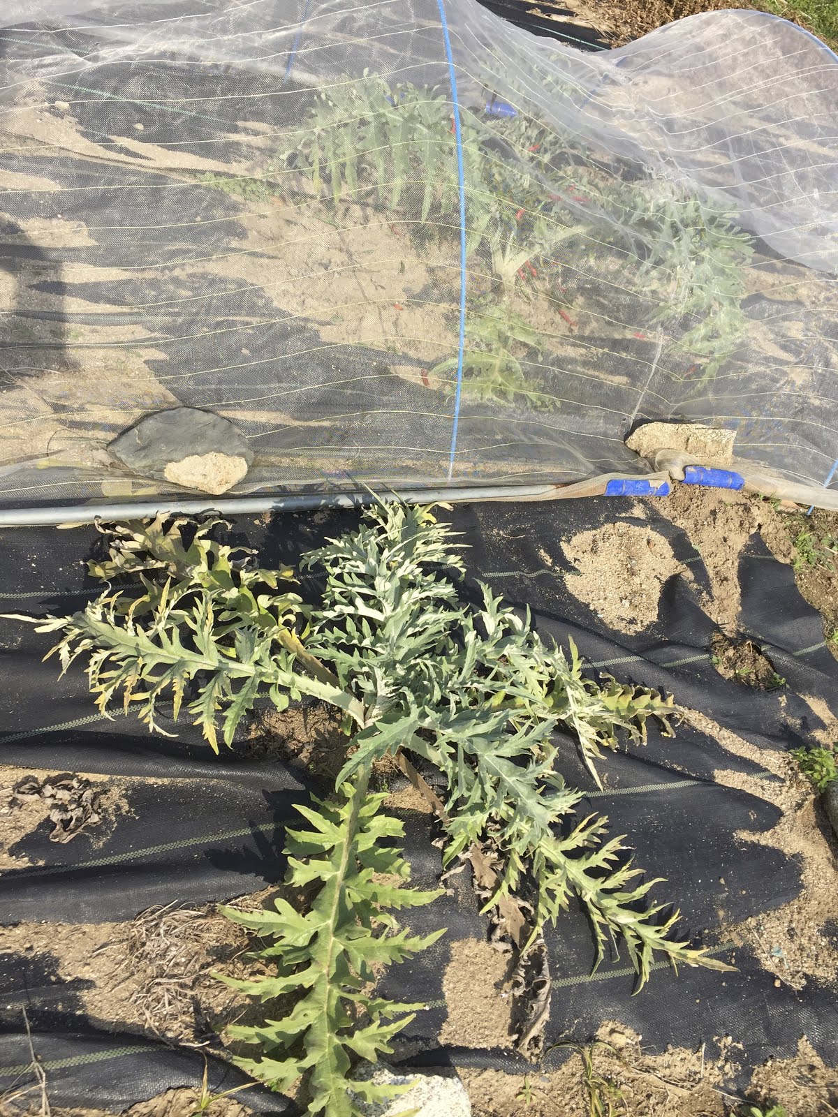 防虫ネットに守られて、来年の5月くらいまで新たにアブラムシの発生がなければ、第2菜園で今それらりの大きさになっているアーティチョークは、来年の初夏にはさらに大きく成長し、花をたくさんつける可能性があるのだ。