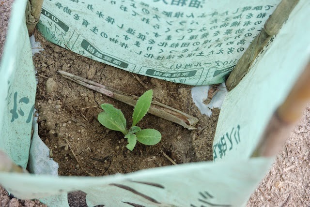 この苗が元気だったので、残った小さくて非常に弱々しい苗を全て予定の場所に植え付けることにした。昨日のことだ。