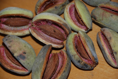 アーモンドの収穫時期は、アーモンドの実が割れて種が顔を出す時期、ということを昨年の収穫の後の調べで、初めて知った。