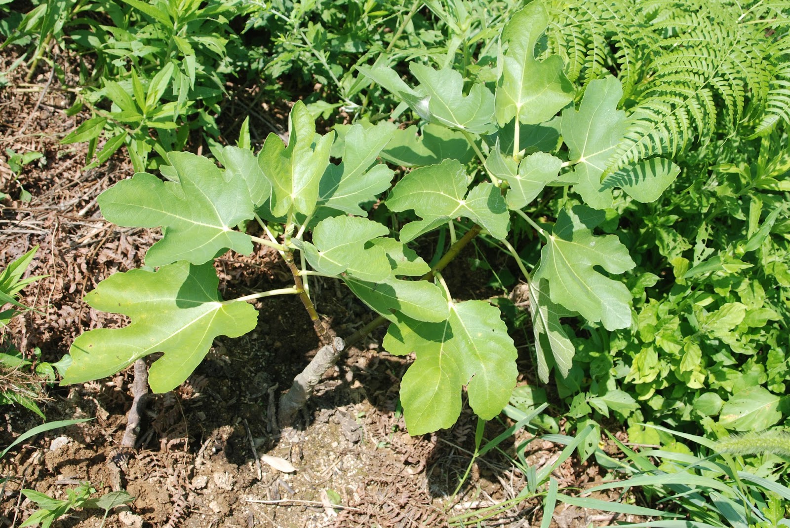 | 植えて2ヶ月半でこの姿。今からどんどん成長しそうだ。 この苗は挿し木をしたのが昨年11月。芽が出てきたのは今年の4月だった。 イチジクの挿し木は2月がよいと本に書いてあったが11月でも問題なかったようだ。 |
