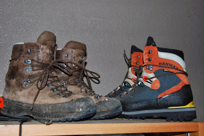 | 同じ頃に買った通常の登山靴はボロボロ、一方雪山用の靴はまだきれいにしている。 この雪山用の靴は、いつかまた出番は来るのだろうか? |