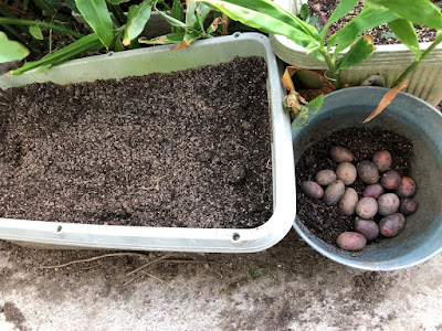 こんな芋を、若干日陰になりやすいプランターに置いていった。