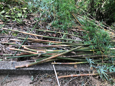 すぐ運ぶと、水分を蓄えた竹は重いので、しばらく乾燥させて持ち運ぶつもりだ。