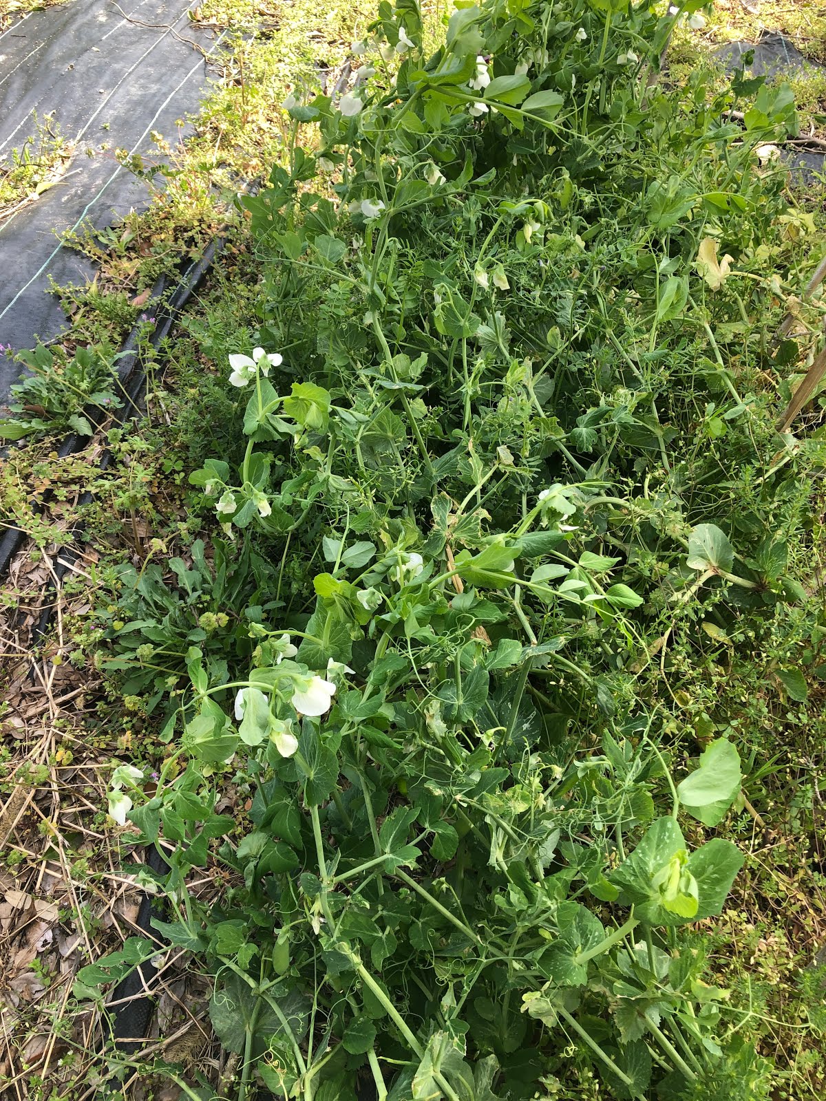 | グリーンピースは放任栽培では収穫にたどり着けないかもかもしれない。 |