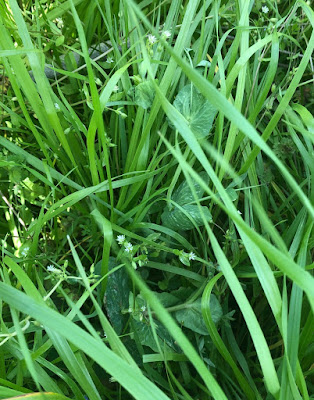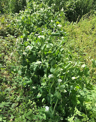 グリーンピースの放任栽培は雑草に負けたものが多いようで苗の姿が見えない。