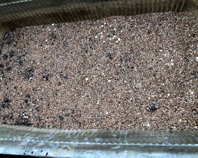豆の上は軽くバーミキュライトで覆土して、ジョウロで水をかけた。