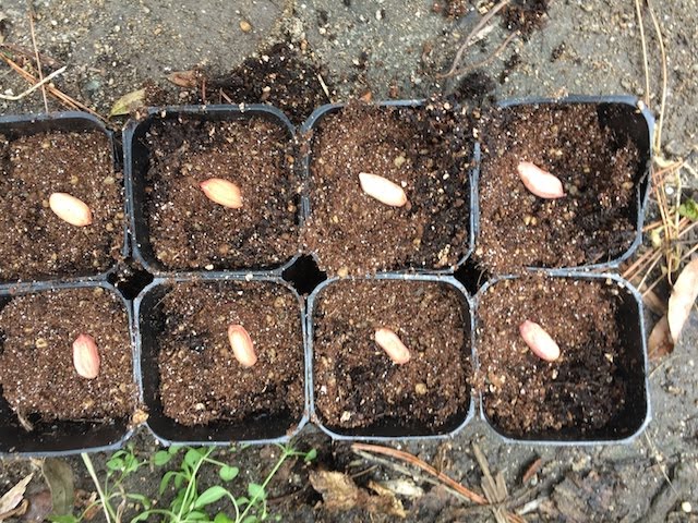 | 8個のタネは連結ポットに蒔いた。 |