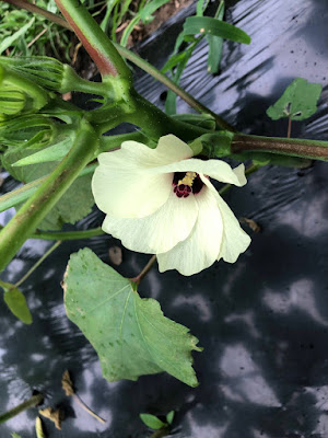 だから、この時期のオクラを収穫するときは畝の周りを背をかがめてぐるりと1周して採り忘れがないようにしている。