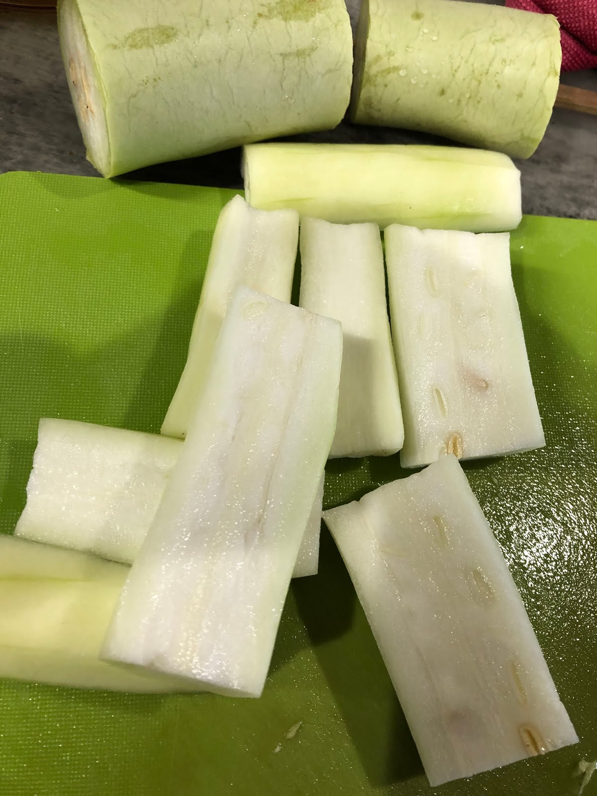 | 実が崩れにくいので、私は冬瓜より長いズッキーニの方が好きだ。 |
