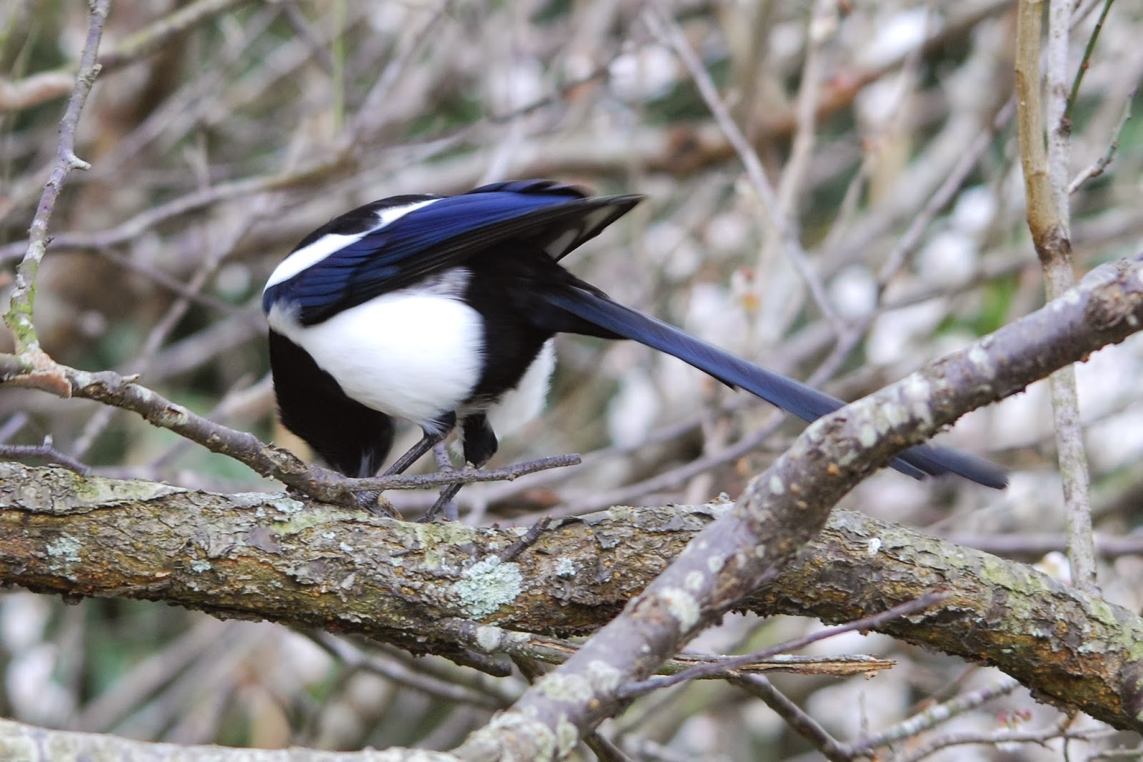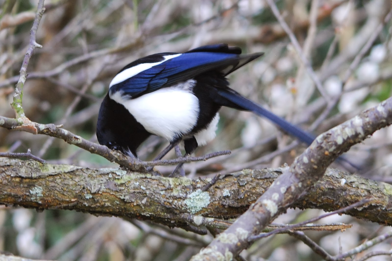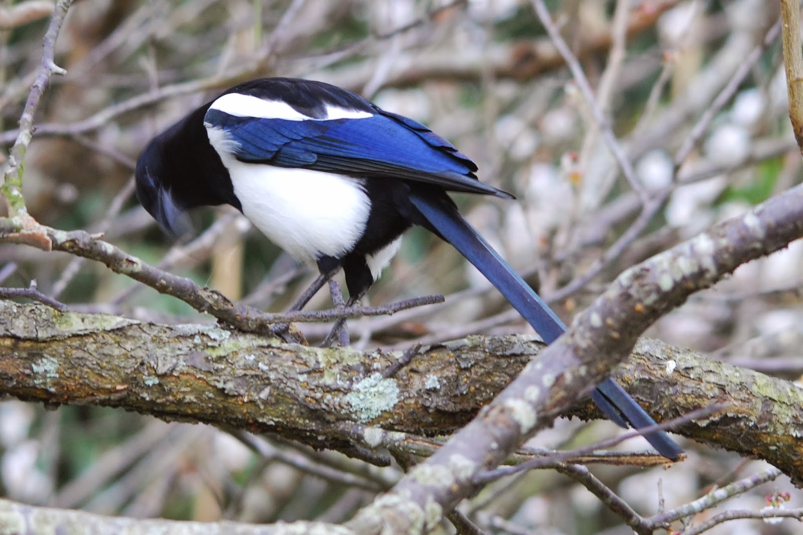 そこにある梅の木に一羽のカチガラスが止まっていた。