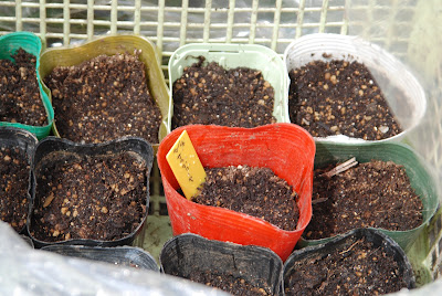 最近カボチャ、ゴーヤ、豆、ズッキーニの種のポット植え付けをおこなった。
