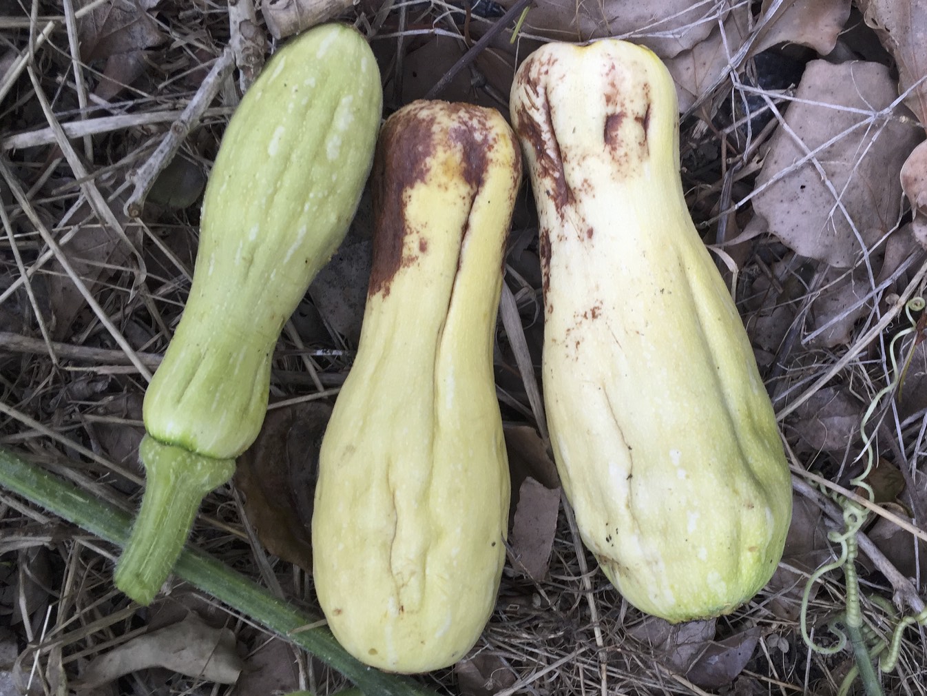 | それでも、小さなバターナッツカボチャの実はたくさんある。 そんな中で、この実だけは収穫にありつけそうに思えるのだが。。 |