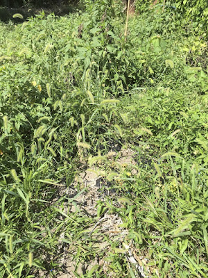 | 雑草の中に、マルチがかかった畝があるのだが、どこが畝だか分からない。 |