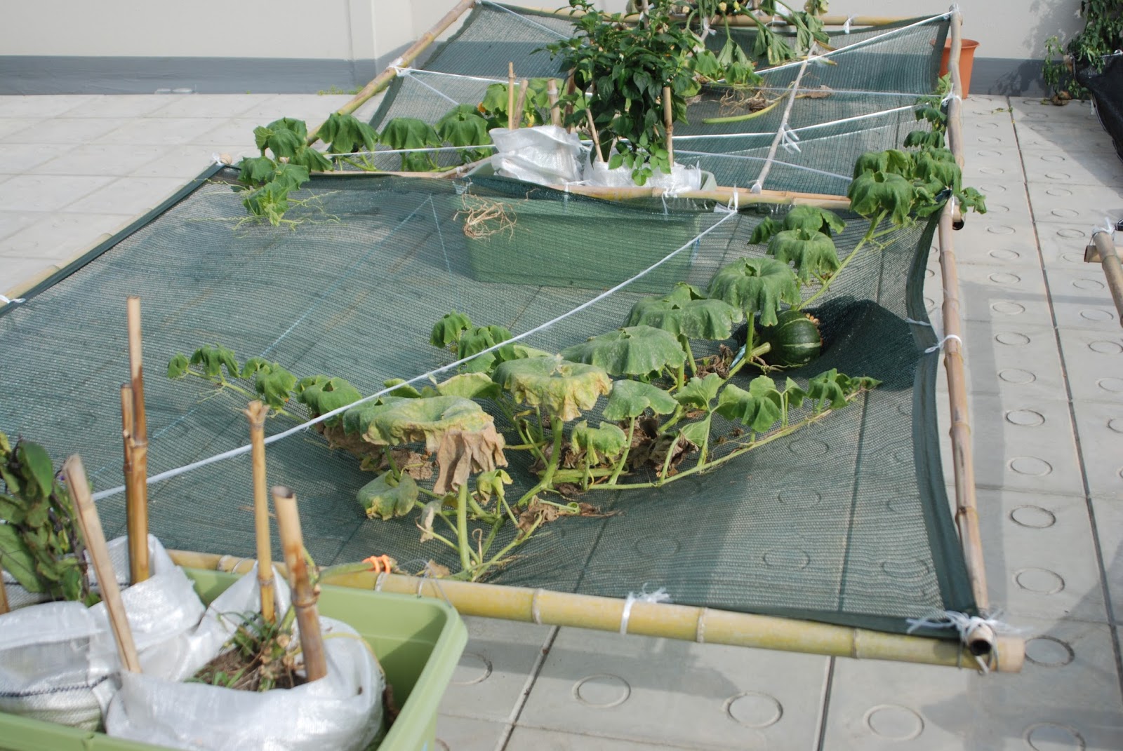 さて、つぎは屋上でのカボチャ栽培を見てみよう。
