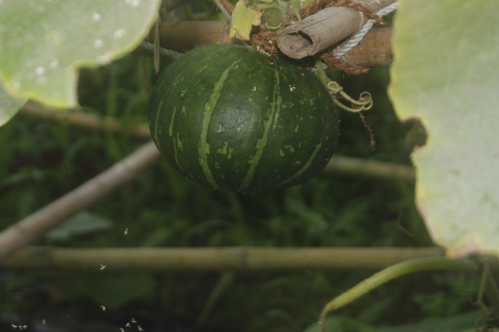 さて、それでは本命の、竹の棚で作った空中栽培の方を見てみよう。