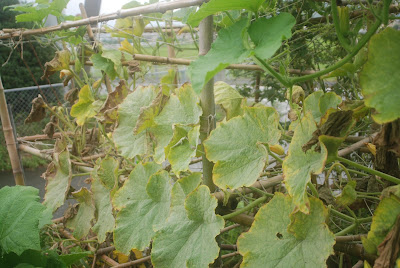 この病気している苗は棚の下に最初に植えた地植えの苗だ。
