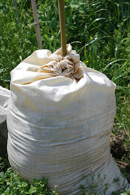 | ガラ袋は、設置した後この日まで上端を締めていた。 新しい雑草の種が入らないようにするための私の工夫? |