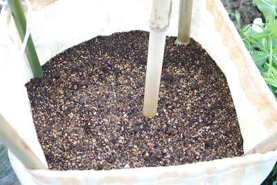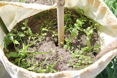 | 真ん中の竹支柱はガラ袋が倒れることがないように地面深く突き刺している。 |